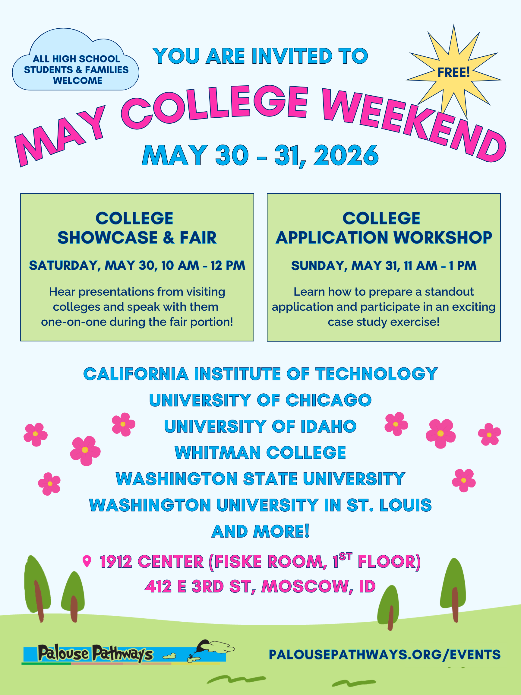 Local and national colleges will join us including California Institute of Technology, University of Chicago, University of Idaho, Whitman College, Washington State University, Washington University in St. Louis, and more!